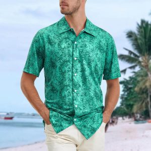 Custom Men Green Leaf Print Shirt