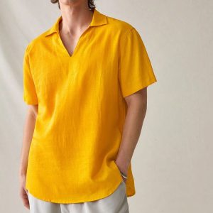 OEM ODM Men’s Summer Linen Yellow Short Sleeve Shirt