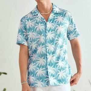 Summer Button Men Coconut Tree Print Shirt