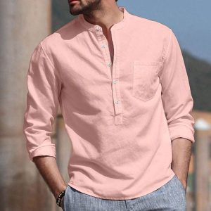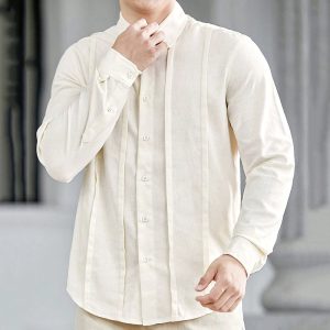 Men’s Turn Down Collar Linen Creamy White Shirt