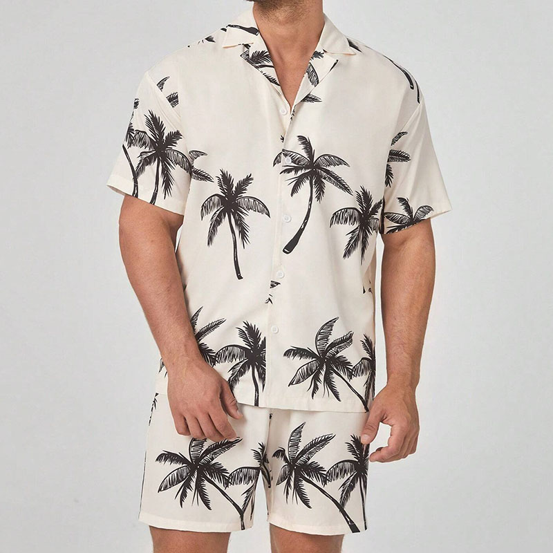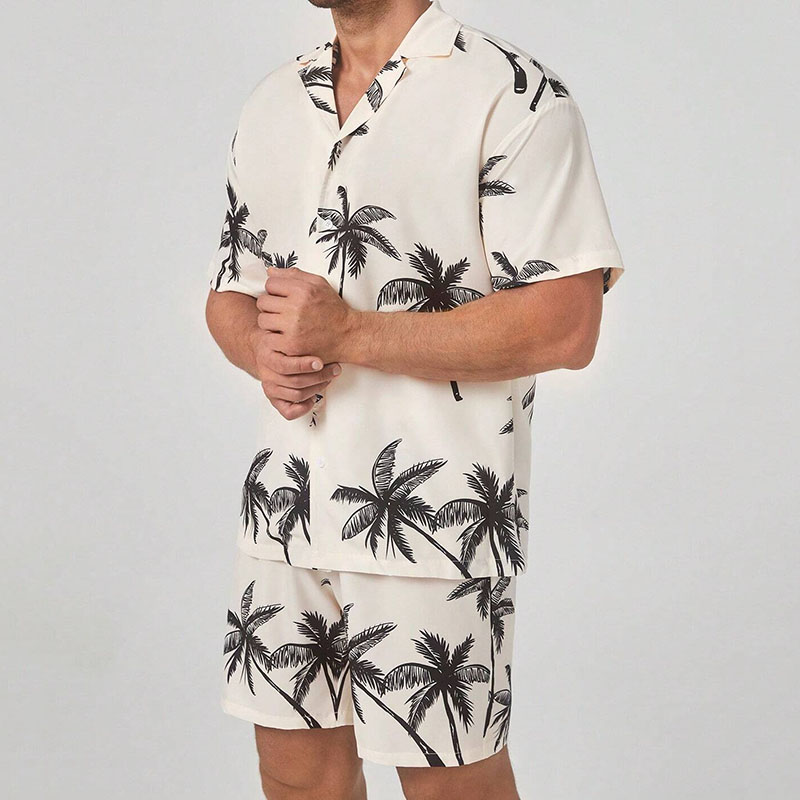 OEM Men Tropical Print Shirt & Shorts PJ Set